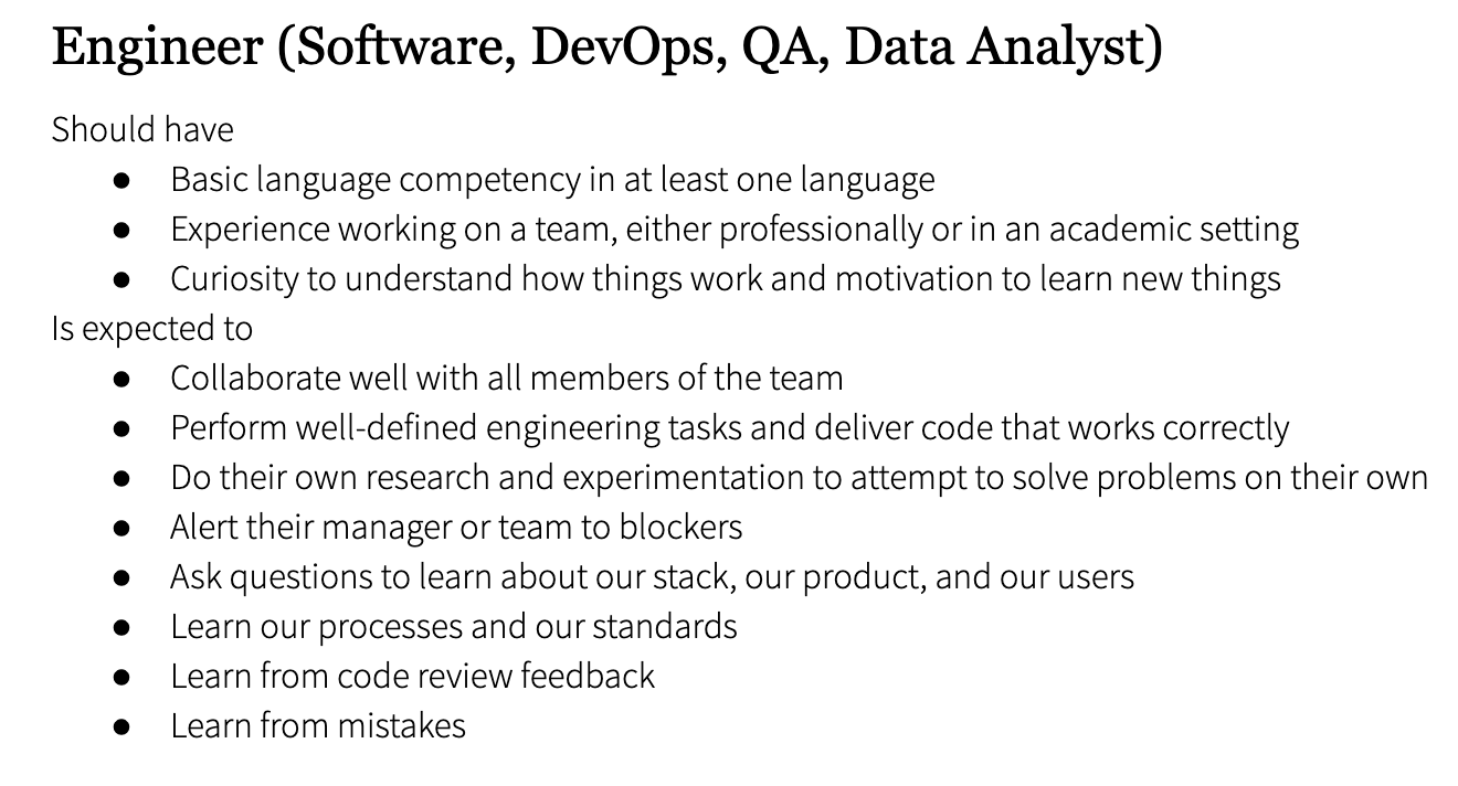 - Official Internal Title:Engineer (Software, DevOps, QA, Data Analyst)