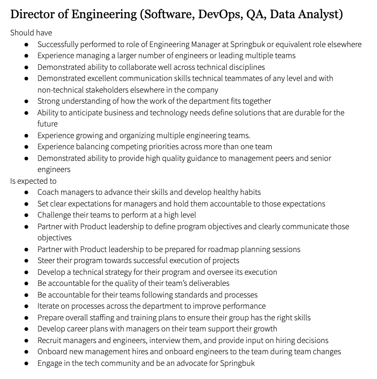 - Official Internal Title:Director of Engineering (Software, DevOps, QA, Data Analyst)